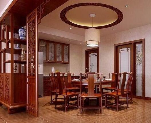 1.中式餐廳裝修中燈具的選擇 中式餐廳一般對燈具的選擇偏淡一些,主要是要與餐廳的整體裝飾風格一致,達到餐廳所需要的明亮、柔和、自然的要求,當然在選擇燈時最好選擇下罩式和組合型的。 2.中式餐廳裝修中色彩的選擇 中式餐廳的色彩應該以溫暖、淡雅、舒適的淡黃為主,以此來營造潔凈、淡雅的氣質,增強人們就餐時的舒適感,增加食欲,同時,一般中式餐廳還會在周圍增加一些綠色植物。