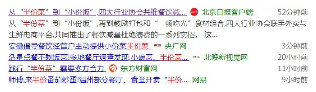 一時間,“糧食浪費”和“糧食安全”引起人們重視,“厲行節約,反對浪費”的社會風尚再次被人們提起。在餐飲行業,“半份菜”也重回人們視野,正形成一股新風尚。