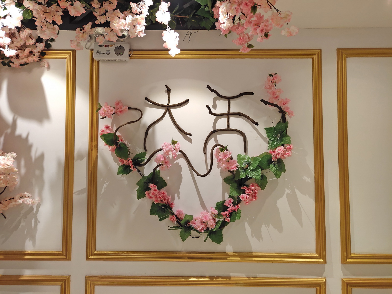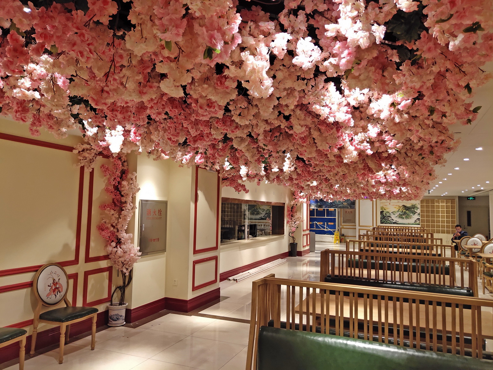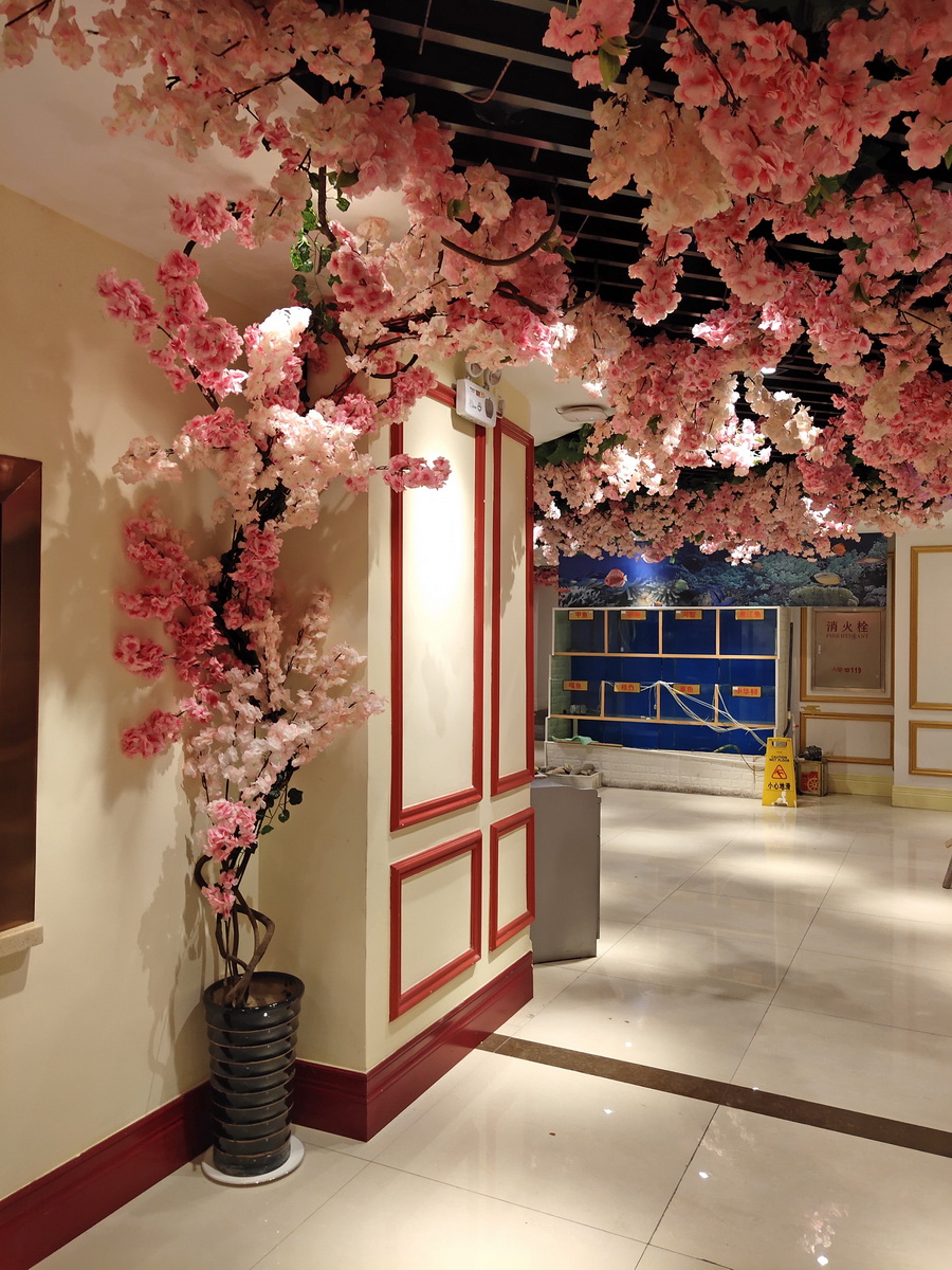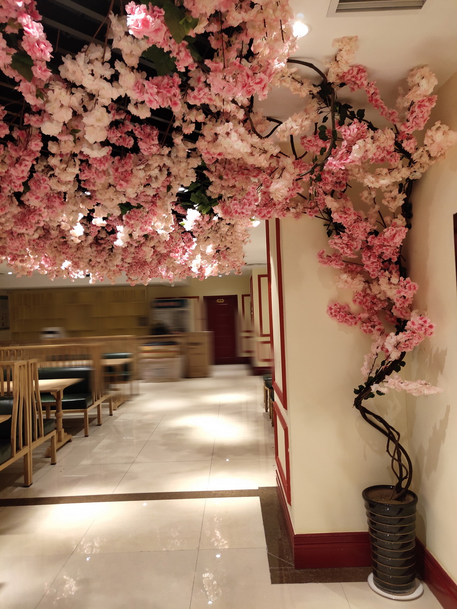 桃枝搖曳,燈光與花枝交錯出不同的光線,營造出多層次的視覺盛宴。花藝盎然的環境不僅僅讓您感受到輕松自在,還有一點芬芳和可愛哦。
