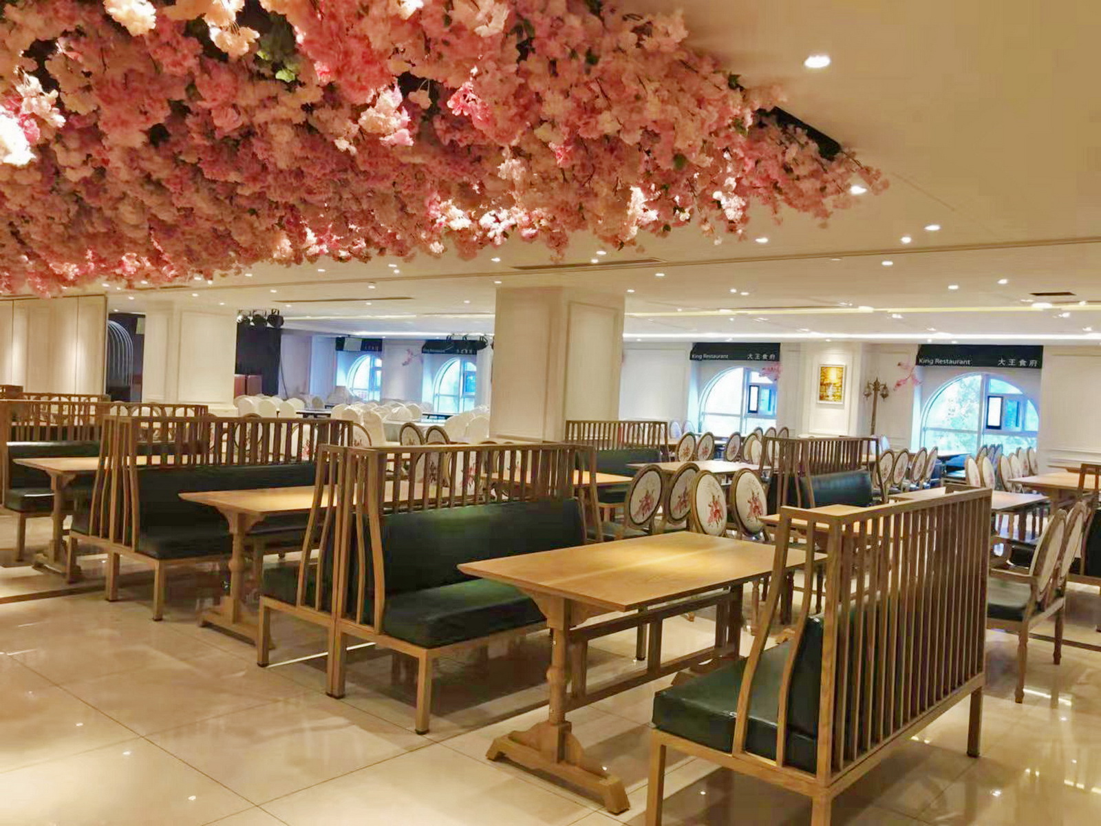餐廳的散座大廳,是整個餐廳的亮點。那就是充滿桃花和干凈整齊的一個用餐空間,仿真桃花自然垂下,讓浪漫離自己更近,更緊密,讓你更容易的感受和親近好心情。