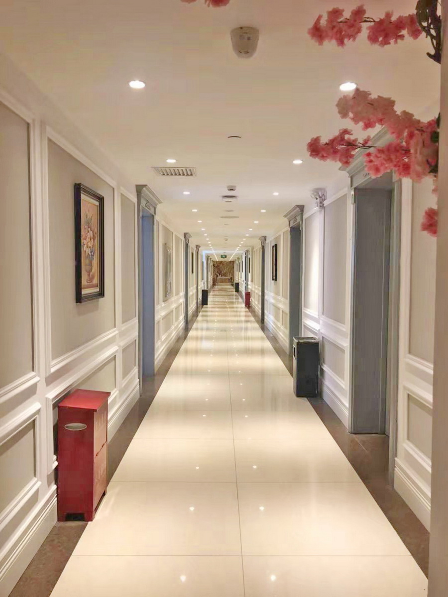 走廊采用的是歐式的設計方案,墻面造型大氣,與地面、天花形成強烈的對比,巧妙的把整個空間結合在一起。
