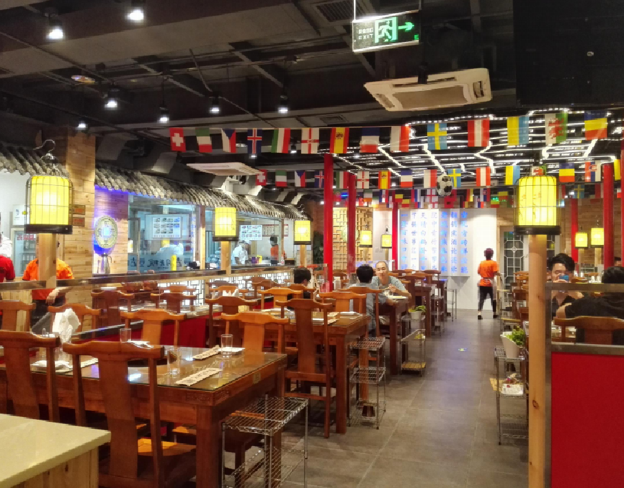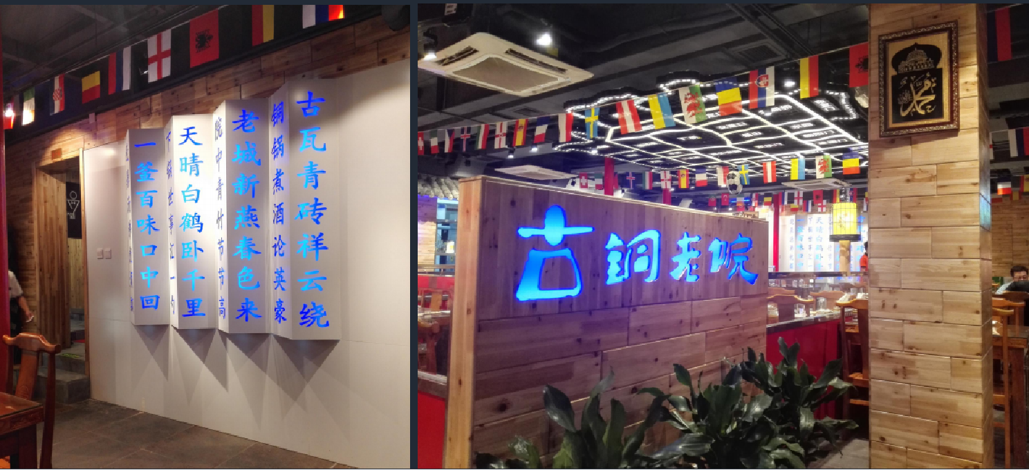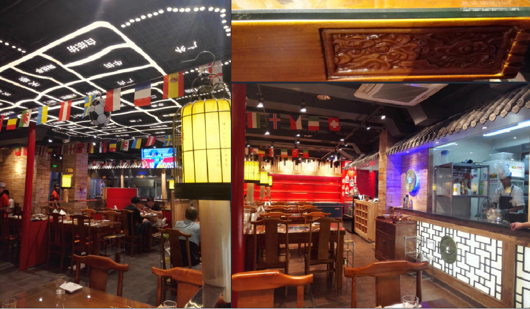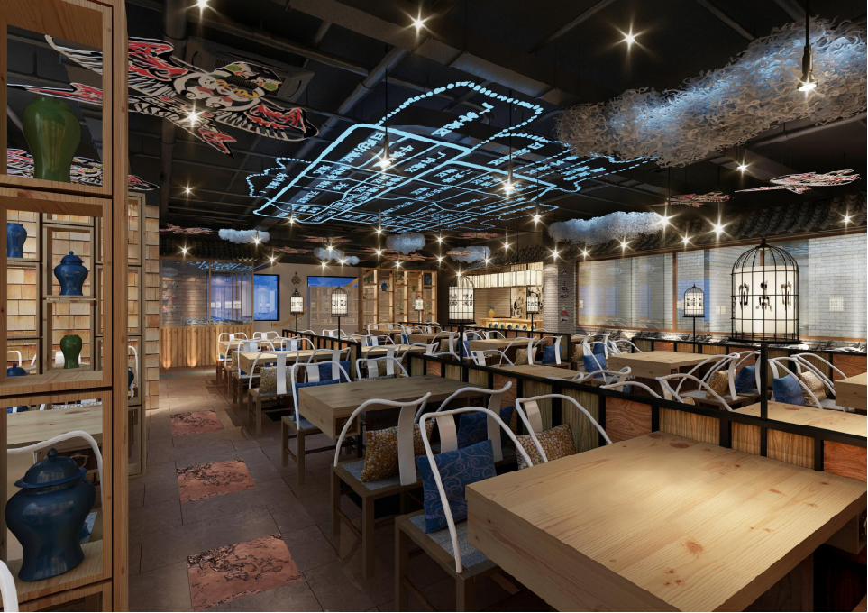 餐廳設(shè)計的思考定位為一個可以感受老北京文化的寓所,品味地道的涮肉,餐廳的風(fēng)格在融入了大數(shù)據(jù)、智能化的基礎(chǔ)上將傳統(tǒng)文化的古味與現(xiàn)代時尚的表現(xiàn)相結(jié)合。頂面老北京城區(qū)地圖以LED現(xiàn)代手法呈現(xiàn)—是歷史,地面      板浮雕中國省份地圖寓意品牌的不斷發(fā)展壯大—是未來!用口感留住老一輩的向往,結(jié)合現(xiàn)代智能吸引雙井地區(qū)80后的就餐需求。