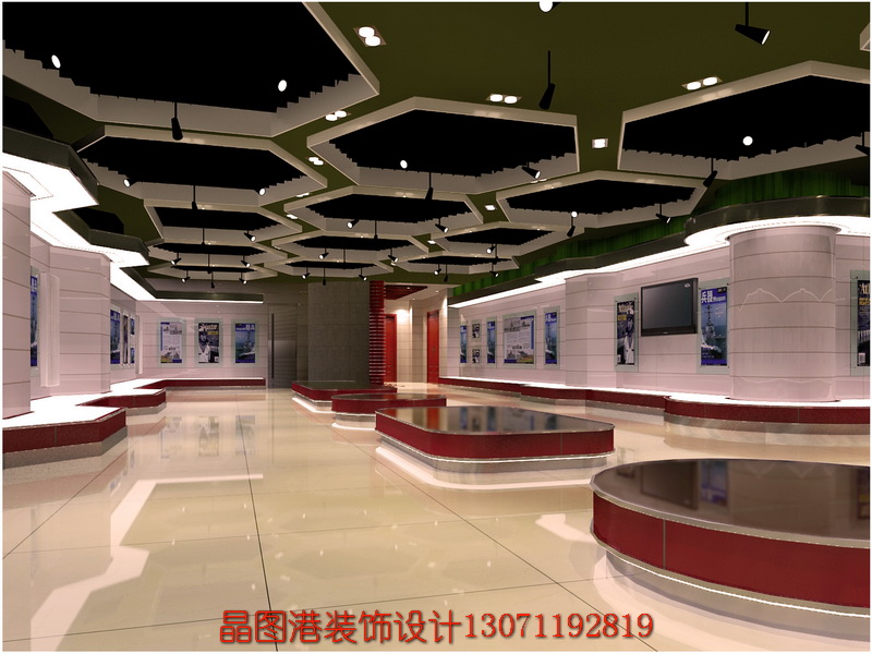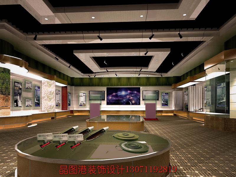 設計單位:北京晶圖港建筑裝飾工程有限公司 設計師: 張順 項目性質:展廳設計 建設方:中國人民解放軍 坐落位置:河北廊坊市 面積:879平方米 項目材料:地毯、實木地板,清油木飾面,鋁塑板飾面,壁紙,環保乳膠漆等等 設計時間:20091012 設計風格:現代風格