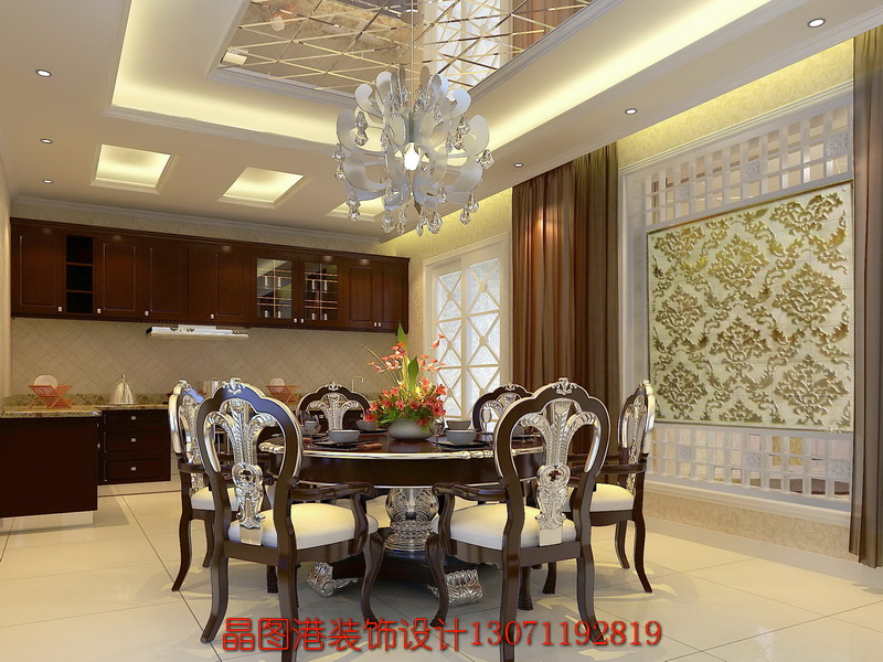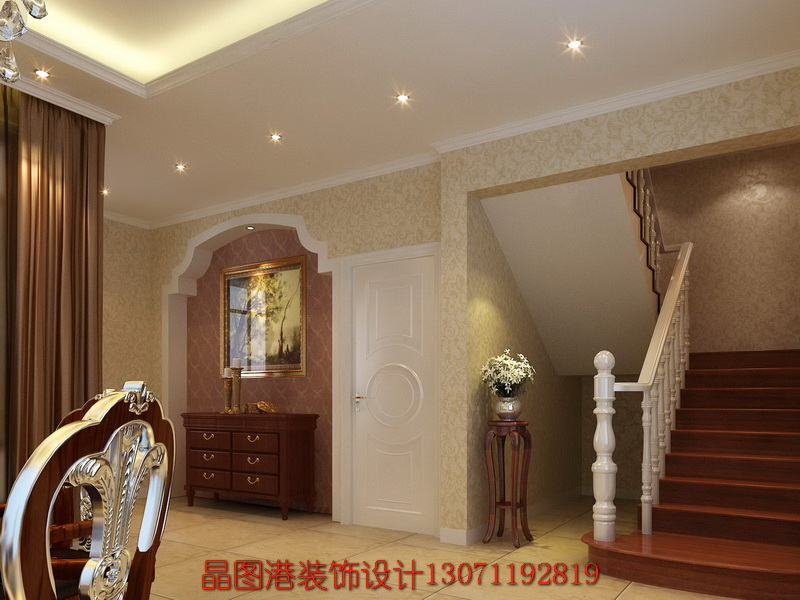 設計單位:北京晶圖港建筑裝飾藝術設計公司 設計師:張順 項目性質:別墅項目 建設方:私人 坐落位置:北京龍湖地產 面積:430平方米 項目材料:地毯、實木地板,玻化磚,實木花格,壁紙等等 設計時間:20100823 設計風格:簡約歐式 設計理念:本案在造型上,圍繞歐式古典的特點,運用各種具有歐式風格的石膏線進行裝飾,使空間的風格更加突出,讓人一目了然。格局上,可以看到,拱形的門洞既使空間的功能區域分割開來,且很好的裝飾了空間,使之更有層次感,進深感.簡約歐式風格沿襲古典歐式風格的主元素,融入了現代的生活元素。歐式的居室有的不只是豪華大氣,更多的是愜意和浪漫。通過完美的典線,精益求精的細節處理,帶給家人不盡的舒服觸感,實際上和諧是歐式風格的最高境界。