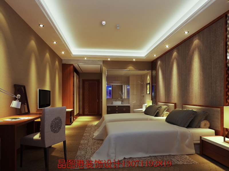 設(shè)計單位:北京晶圖港建筑裝飾藝術(shù)設(shè)計公司 設(shè)計師:張順 項目性質(zhì):招待所酒店項目 建設(shè)方:山西煤田地質(zhì)勘探 坐落位置:山西 面積:3430平方米 項目材料:地毯、實木地板,?;u,大理石,壁紙等等 設(shè)計時間:20121223 設(shè)計風(fēng)格:中式歐式混搭 設(shè)計理念:設(shè)計師巧妙的將歐式和中式風(fēng)格融入酒店公共與客房區(qū)域的設(shè)計,突出了酒店強烈的環(huán)保時尚特點、地域特色與溫馨如家的感受;并通過設(shè)計師家具與精致藝術(shù)品的點綴,完美詮釋著酒店的高雅時尚。