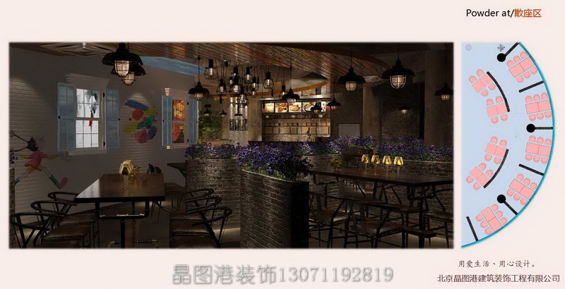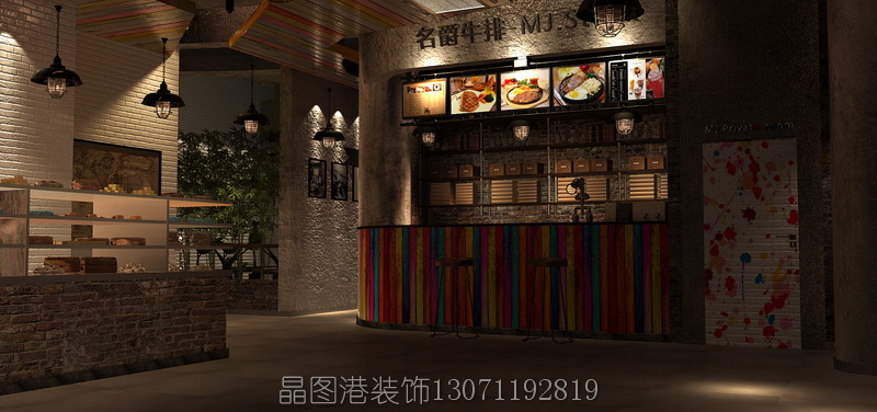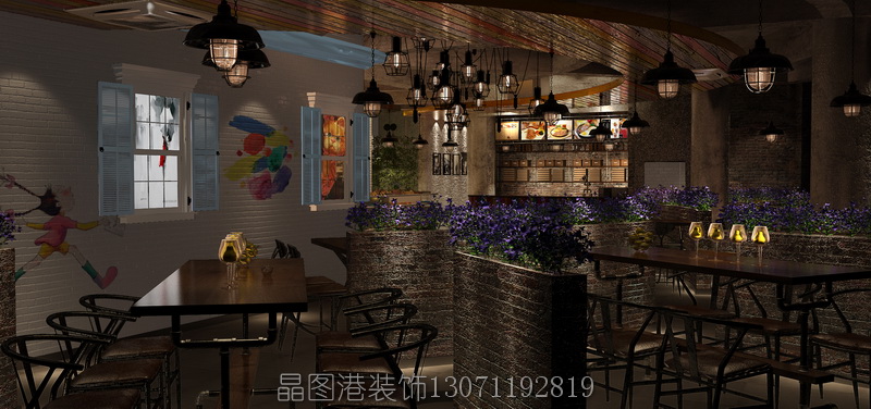 北京餐廳設(shè)計(jì)裝修公司《名爵牛排》西餐廳設(shè)計(jì) 晶圖港裝飾 項(xiàng)目名稱:名爵牛排 地址:江蘇南通 項(xiàng)目設(shè)計(jì)師:張順、王志軒項(xiàng)目面積:250㎡ 建設(shè)主要材料:素水泥、墻繪、花磚、防火板、紅磚 設(shè)計(jì)風(fēng)格:工業(yè)風(fēng)loft風(fēng)格。 《名爵牛排》面積為410平方米,餐廳設(shè)計(jì)采用時(shí)尚工業(yè)風(fēng)格,打造獨(dú)具魅力的暖心餐廳。 本案,采用了大量鋼管、工業(yè)吊燈、霓虹燈和鐵皮彩色椅子,充滿了時(shí)尚工業(yè)元素。同時(shí),搭配木質(zhì)的桌子、靠椅。當(dāng)工業(yè)風(fēng)遇上文藝范,真是美翻了一顆顆的玻璃心,令人眼前一亮。再配上高腳凳子,上有彩色吊燈,下有精心搭配的花色地磚,再加上兩邊的綠葉點(diǎn)綴,立刻營(yíng)造獨(dú)立精美的用餐空間。 室內(nèi)的裝飾搭配更加精致,天花掛上特地訂做的燈具,墻上掛著色彩豐滿的涂鴉小黑板,即使是在不起眼的角落,餐廳還十分貼心的設(shè)置了一處洗手臺(tái),復(fù)古的工業(yè)洗手盆和海洋風(fēng)味的掛壁鏡子,真讓食客甜到心里。