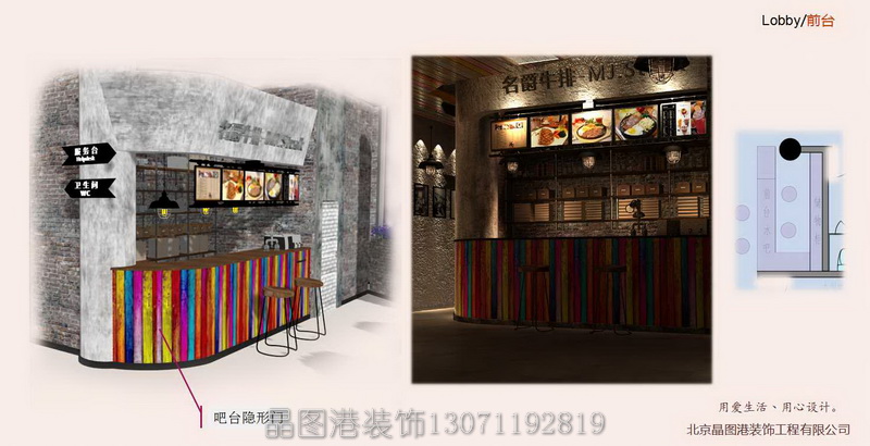 以上資料由晶圖港餐廳店鋪設(shè)計(jì)裝修機(jī)構(gòu)(http://m.hflwd.cn)編輯整理,轉(zhuǎn)載請(qǐng)注明。如果您有任何需求可以聯(lián)系我們,我們將竭誠(chéng)為您服務(wù)。 北京豐臺(tái)區(qū)菜戶營(yíng)財(cái)富西環(huán)大廈2604-2605室,導(dǎo)航請(qǐng)搜《晶圖港》 晶圖港裝飾專業(yè)定制餐飲空間,致力于商業(yè)餐廳會(huì)所店鋪幼兒園設(shè)計(jì)裝修整裝工程。商業(yè)策劃,店面選址,裝修設(shè)計(jì),結(jié)構(gòu)改造,店面升級(jí),室內(nèi)裝修,家具定制,軟裝配飾,智能系統(tǒng),機(jī)電設(shè)備,消防改造,廣告策劃,營(yíng)銷活動(dòng),整體商業(yè)服務(wù)體系。晶圖港裝飾,張順13071192819