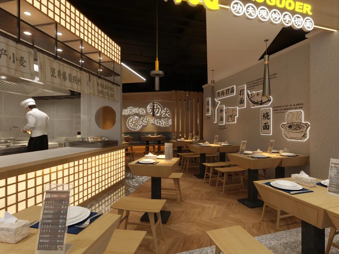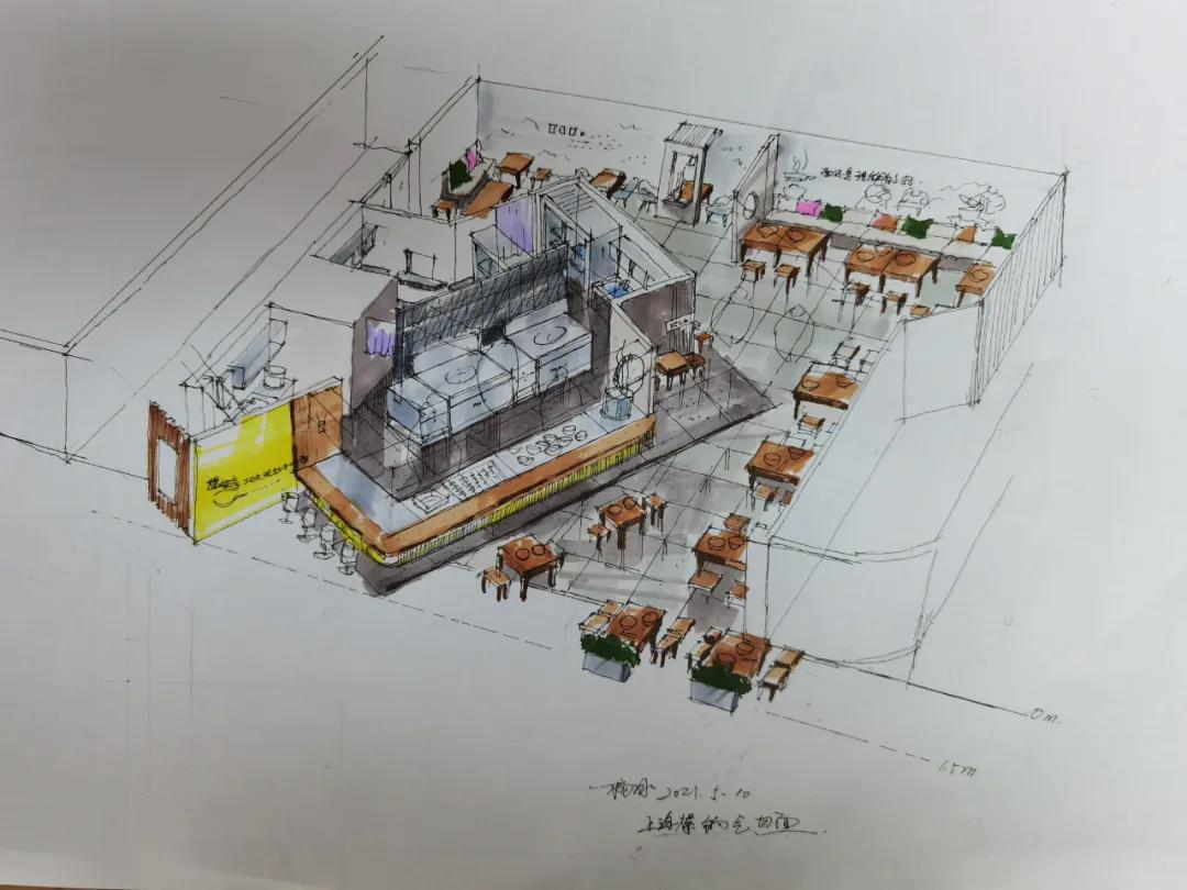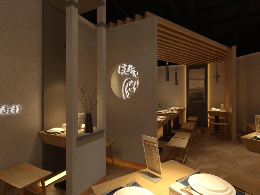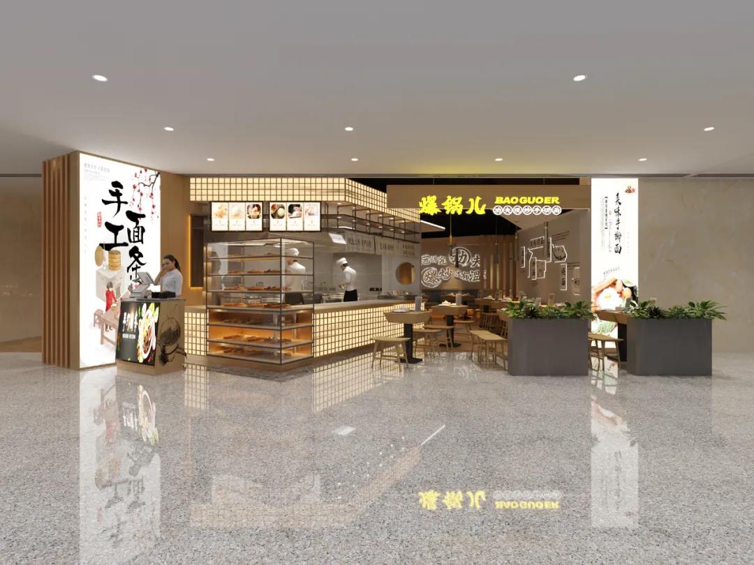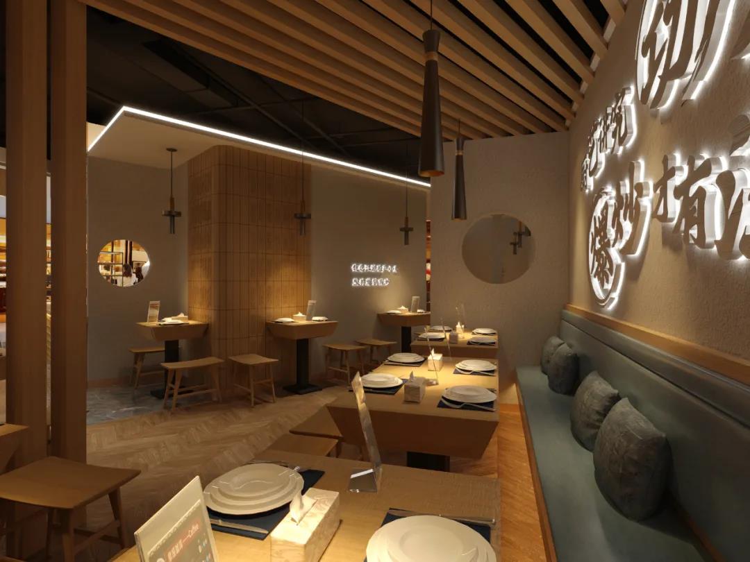 本案位于上海虹橋龍湖天街商場(chǎng)內(nèi),空間整體沒(méi)有做過(guò)多的裝飾,更多的是用原有建筑形式;體現(xiàn)空間的立體感,節(jié)奏感,純粹感。為了增大入口的體量感和易識(shí)別度,將門(mén)頭,選面臺(tái),操作臺(tái),等明檔合為一體,并延申旋轉(zhuǎn)30度。整體顏色用原木色為主,體現(xiàn)本色,質(zhì)樸。將面的品質(zhì),操作過(guò)程,衛(wèi)生環(huán)境,更直觀(guān)的表達(dá)給客人。 室內(nèi)效果圖