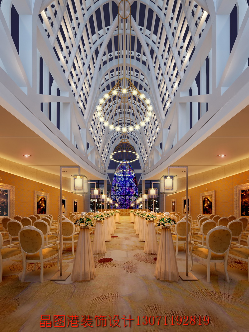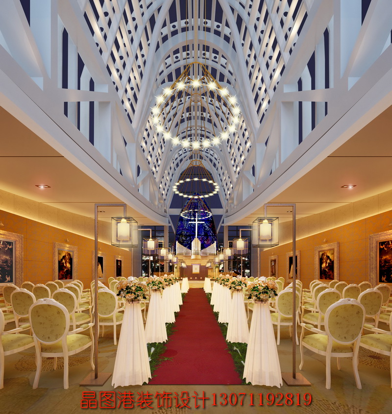 設(shè)計理念:完美秉承時尚建筑的風(fēng)格特色,科學(xué)規(guī)劃室內(nèi)街區(qū)的布局景觀,打造高端大氣、國際范的婚慶大廳的教堂現(xiàn)場氛圍,動情演繹高端婚慶的現(xiàn)場氣氛和購物中心的“都市白領(lǐng)悠活天地”。