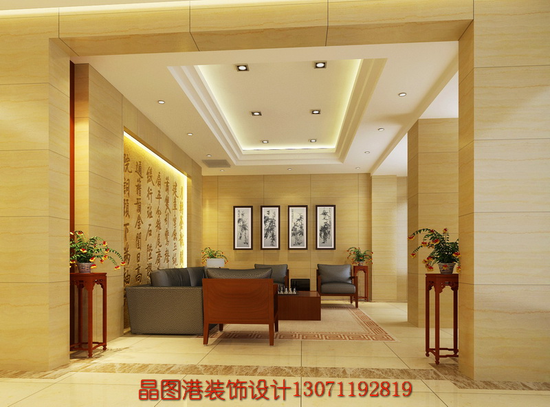 設計單位:北京晶圖港建筑裝飾藝術設計公司 設計師:張順 項目性質:辦公樓會所 建設方:盛達集團北京公司 坐落位置:北京方莊 面積:6234平方米 項目材料:地毯、軟包吸音板,不銹鋼,輕鋼石膏板吊頂,清油掛板等等 設計時間:20100510 設計風格:穩重現代中式 設計理念:本案從一開始就定位于現代與中式風格的混搭,既要保留中式傳統風韻的雅致與古樸,也要體現現代辦公的舒適與時尚。入口處眾多的中式設計元素讓人一踏人會所便能感受到整體的高貴與典雅,配合燈光的照明,窗格形式的圖案充分彰顯出迷人的視覺魅力。深入會所后,設計筆鋒一轉,讓更多的現代元素來打造時尚空間,無論是效果突出的大型吊燈還是直白的幾何石膏板吊頂,都彰顯著都市生活的華麗與精致。墻面上特意做了很多的凹凸格式造型 以突顯空間的質感燈槽也采用了明亮的光線從而形成明亮的對比效果。辦公室則多采用現代中式的形式,在色調上考慮與整體相融合,以符合都市辦公習慣。從開始到最后,整個動線設計按照人們的視覺印象,空間感受與行為體驗來做區分,風格特點也實現了由突出的中式風情到舒適的現代中式風格的完美轉變,既滿足會所的形式要求又符合辦公的真實需要。