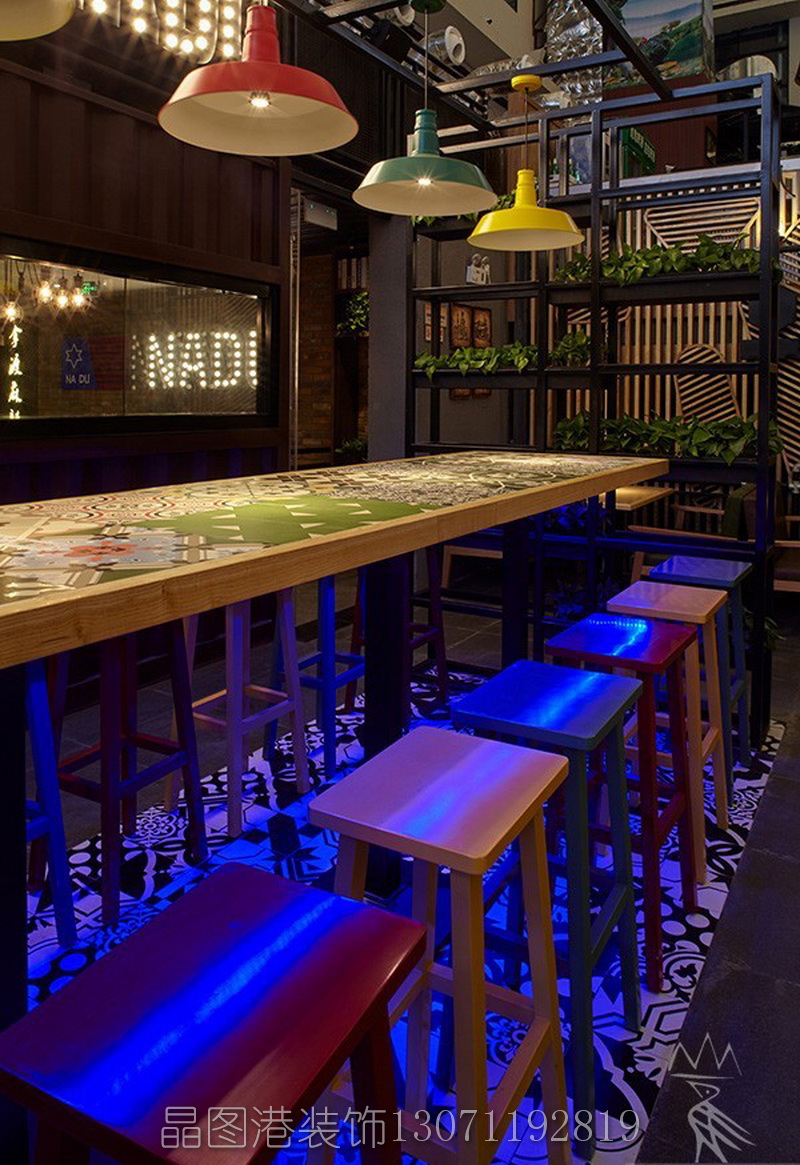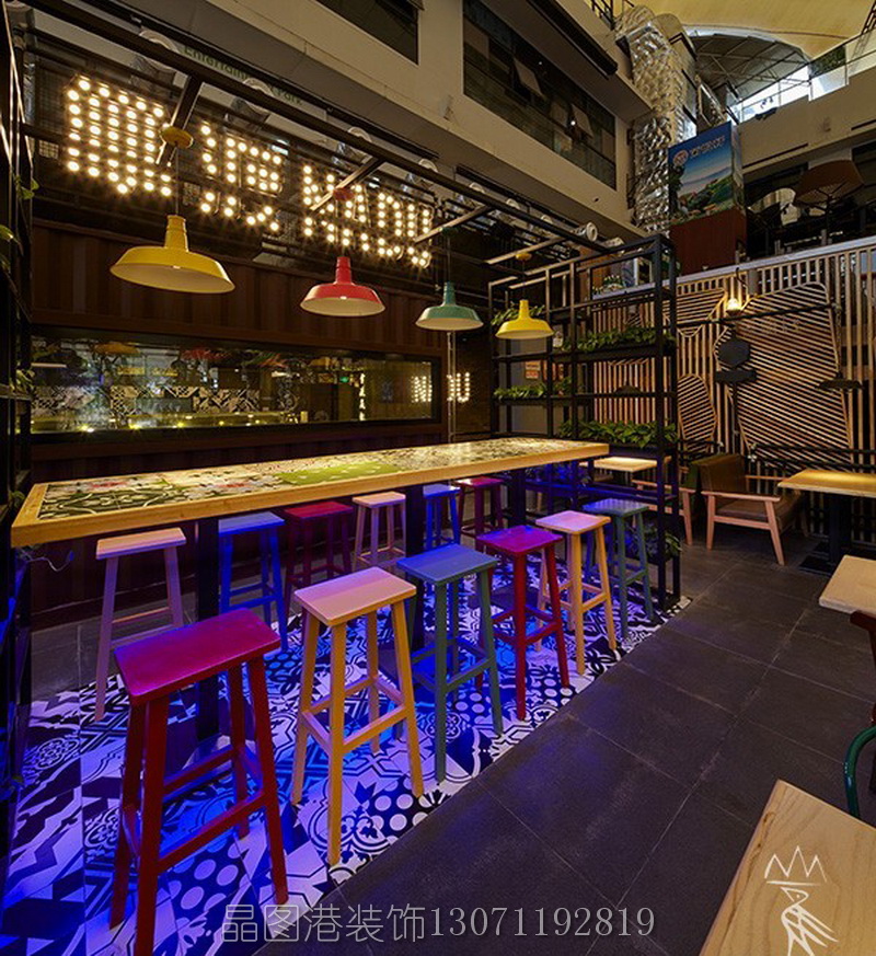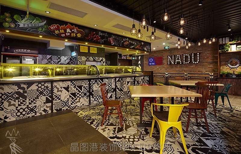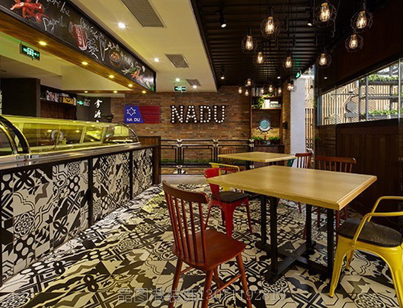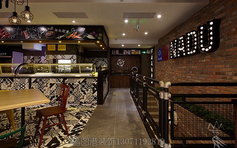 北京餐廳設(shè)計(jì)裝修公司為您講拿渡麻辣香鍋設(shè)計(jì) 晶圖港裝飾 拿渡餐廳設(shè)計(jì):工業(yè)風(fēng)遇上文藝范,美翻了你的玻璃心 [復(fù)制鏈接] 項(xiàng)目名稱:拿渡麻辣香鍋 項(xiàng)目設(shè)計(jì)師:付增斌 項(xiàng)目面積:250㎡ 建設(shè)主要材料:素水泥、墻繪、花磚、防火板、紅磚 設(shè)計(jì)風(fēng)格:工業(yè)風(fēng)、海洋風(fēng) 拿渡麻辣香鍋面積為250平方米,餐廳設(shè)計(jì)采用時(shí)尚工業(yè)風(fēng)格,打造獨(dú)具魅力的暖心餐廳。 ![]() ![]() ![]() 拿渡以一艘造型獨(dú)特的船作為門頭,救生圈和射燈加以裝飾,十分吸引人們的眼球。 ![]() ![]() ![]() 拿渡的戶外餐飲場所,采用了大量鋼管、工業(yè)吊燈、霓虹燈和鐵皮彩色椅子,充滿了時(shí)尚工業(yè)元素。同時(shí),搭配木質(zhì)的桌子、靠椅。當(dāng)工業(yè)風(fēng)遇上文藝范,真是美翻了一顆顆的玻璃心,令人眼前一亮。 ![]() 再配上高腳凳子,上有彩色吊燈,下有精心搭配的花色地磚,再加上兩邊的綠葉點(diǎn)綴,立刻營造獨(dú)立精美的用餐空間。 ![]() ![]() ![]() ![]() 室內(nèi)的裝飾搭配更加精致,天花掛上特地訂做的燈具,墻上掛著色彩豐滿的涂鴉小黑板,即使是在不起眼的角落,餐廳還十分貼心的設(shè)置了一處洗手臺(tái),復(fù)古的工業(yè)洗手盆和海洋風(fēng)味的掛壁鏡子,真讓食客甜到心里。