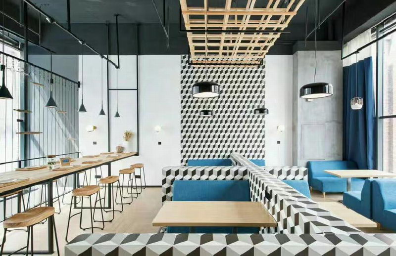 減法原則,在面積較小的餐廳廣泛應用,空間盡量保持通透,一些墻面留白部分,用帶有主題特色的藝術品和裝飾畫和手繪壁畫來點綴,是一種常用的手法。