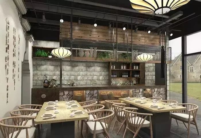 小型中式餐廳餐區(qū)設(shè)計:這里位于靠近窗戶的區(qū)域,在這里就餐有一個好處就是,室外的景色可以隨時看到,這也正是餐桌如此擺放的原因,設(shè)計師希望讓客戶在愉悅中就餐。