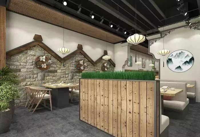 小型中式餐廳進門區(qū)設(shè)計:這里沒有高樓大廈,有的只是老建筑,客戶來到這里是尋求心靈的寧靜,在餐廳內(nèi)部的設(shè)計中設(shè)計師以寧靜為主線,讓客戶在這里收獲寧靜的心情。