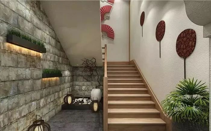小型中式餐廳樓梯設(shè)計:在樓梯的設(shè)計中,設(shè)計師著重強調(diào)的是踏步的間距與高度,目的就是希望保證上樓的安全,這樣的踏間距即安全又舒適,將危險降至最低。