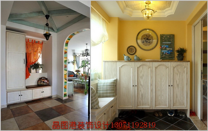 晶圖港裝飾:家居玄關設計專題 通過門廳,可以給室內外的過渡,帶來一個緩沖空間,為剛進門的人一個心理暗示和領域感。門廳作為進入客廳等空間的第一道風景,通常起到的是類似樂曲的序曲作用。如果說一個家居的設計是一幕大戲的話,那么門廳無疑就是那厚重的幕布,走出門廳,幕布也隨之打開,一臺精彩的大戲就此開始?!?/span> 門廳,也叫玄關。這個空間在住房面積緊張的前幾年,還是一般老百姓所不敢問津的,通常進入一個家居,一步就踏進客廳。近年,隨著住房水平的逐年提高,門廳在家居中也日漸普及起來。 最早,我們是從港臺以及歐美的那些家居中發現了這個空間的美妙的,所以,有很多人以為這個空間是借鑒海外的設計而來的。然而事實并非如此,我們從傳統民居中的“影壁墻”就可的到佐證,“影壁墻”的功能與當今的門廳的功能頗為類似。