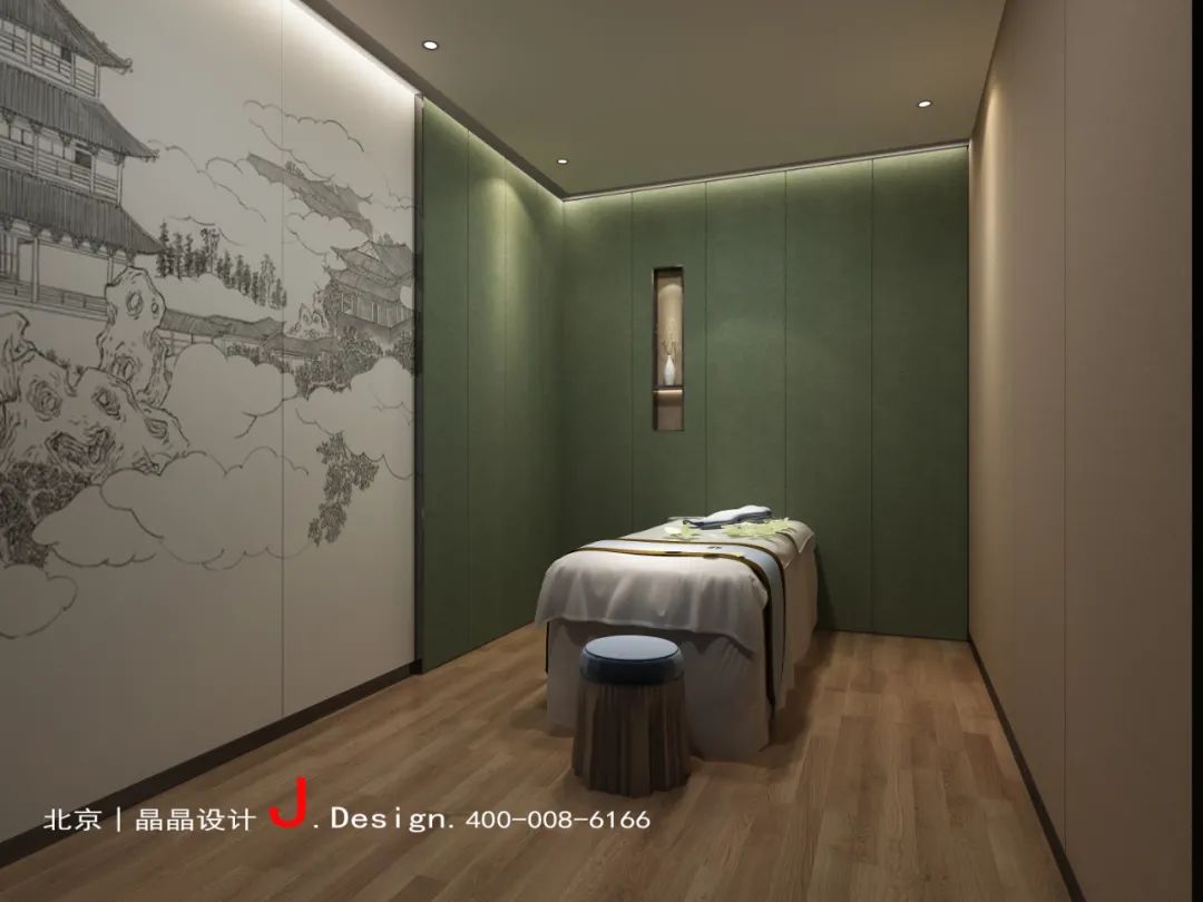 推門進入按摩房,秦宮風情瞬間映入眼簾,帶有秦朝元素的亭臺樓閣、假山、大石、軟裝擺件等,體現在空間的各個角落,勾勒出一幅秦朝宮殿的畫面。定制的壁紙的寧靜畫面把一切紛擾和嘈雜隔絕在外。