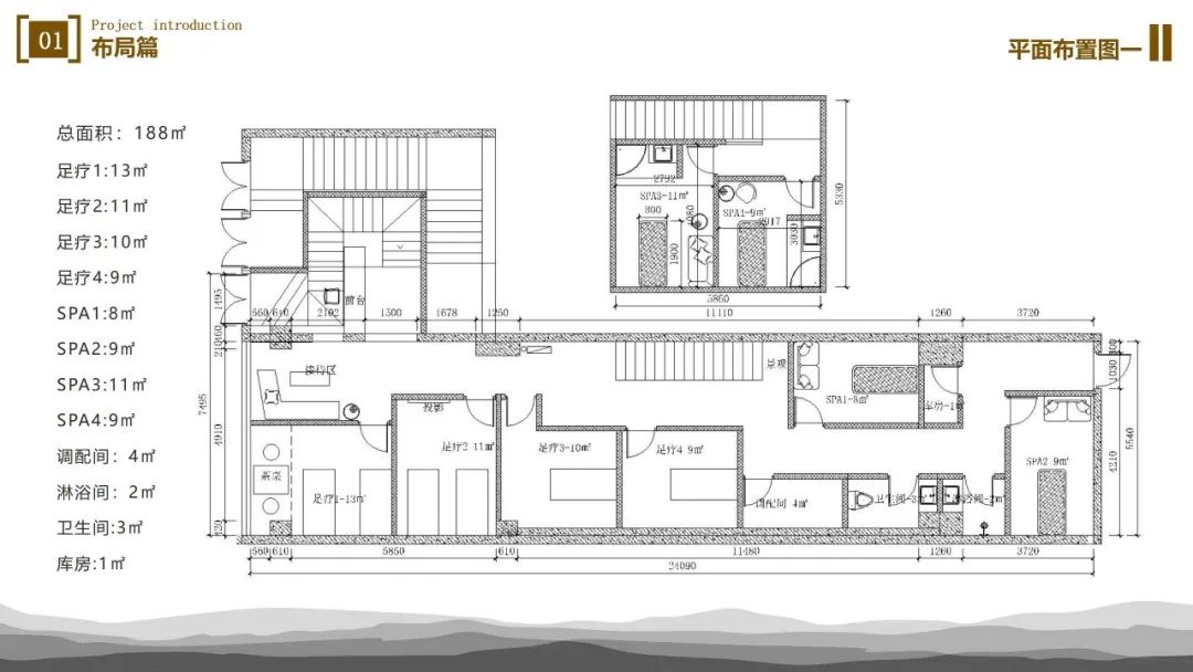 本案是一家秦漢風情足道spa會所,設計師結合了秦漢時期的特色與空間意向以及體驗特色,融合進本土文化中,將空間作為以秦漢為主導穿插沉穩中式為點綴的SPA養身空間。